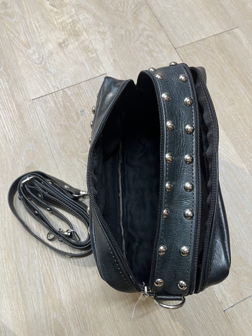 Esta bandolera de cuero artesanal con tachuelas es perfecta para quienes buscan un bolso cómodo, duradero y con carácter propio, ideal tanto para looks casuales como más urbanos.
