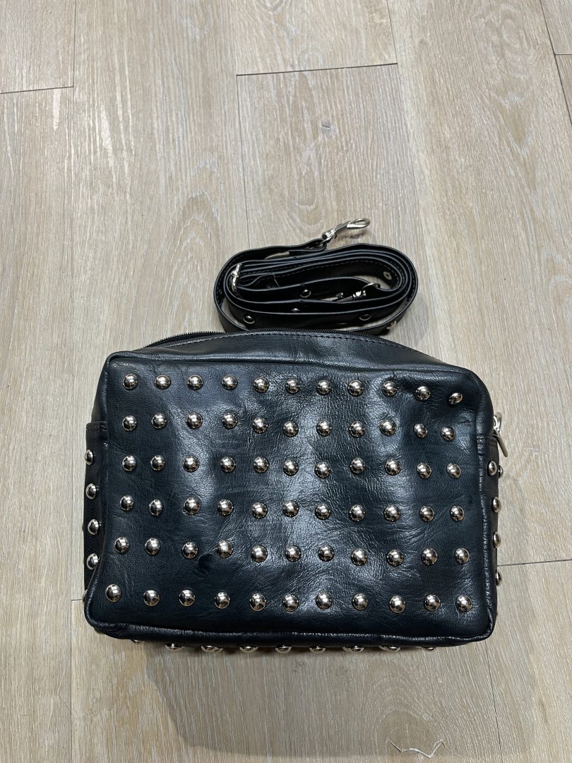 Esta bandolera de cuero con tachuelas hecha a mano está elaborada de forma artesanal con piel natural de alta calidad, cuidando cada detalle para ofrecer un complemento resistente, funcional y con mucha personalidad. Las tachuelas metálicas aportan un estilo moderno y urbano, haciendo de esta bandolera una pieza única.