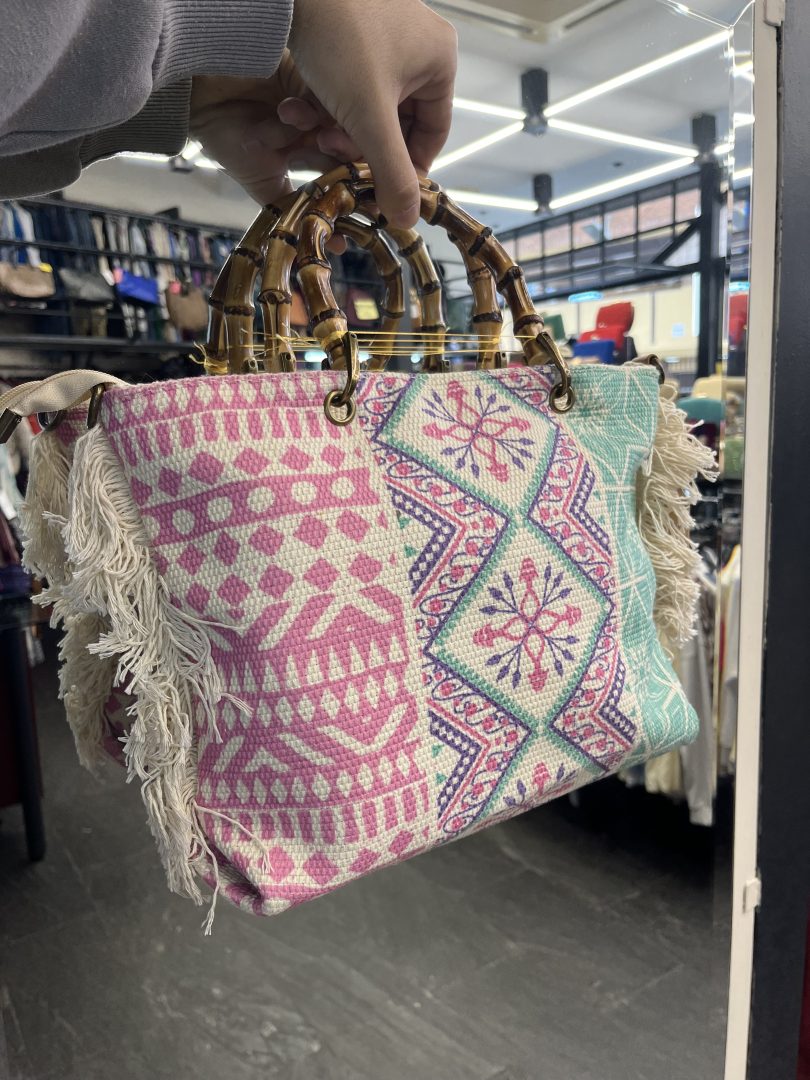 Bolso de algodón con diseño multicolor de estilo étnico, ideal para dar un toque alegre y diferente a cualquier look.
