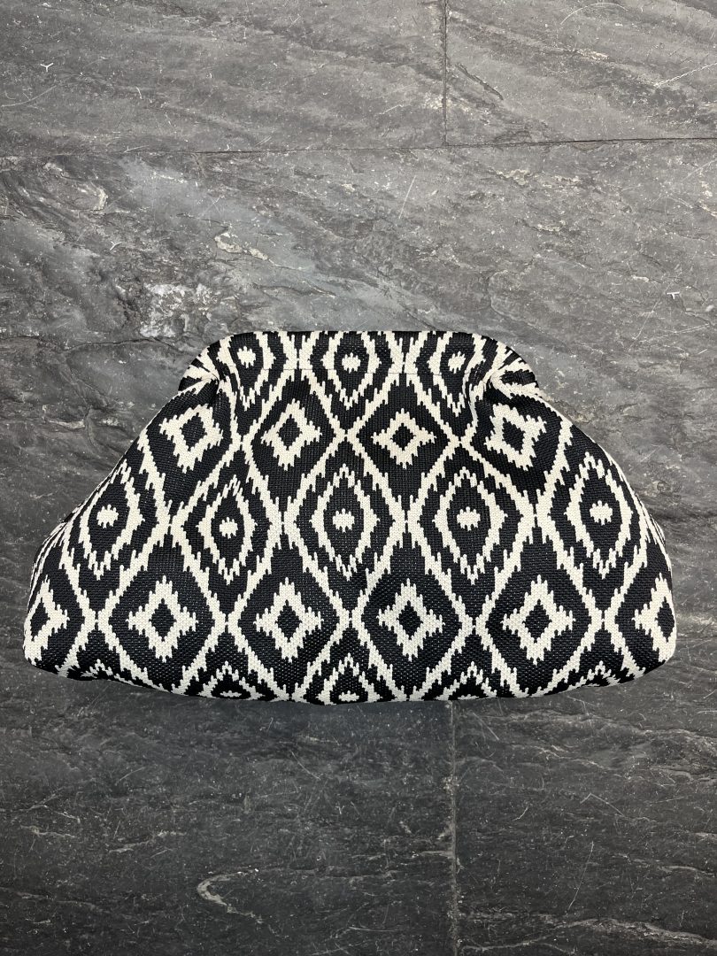 Su diseño geométrico en blanco y negro aporta un estilo elegante y con personalidad, perfecto para combinar tanto en looks casual como más arreglados.