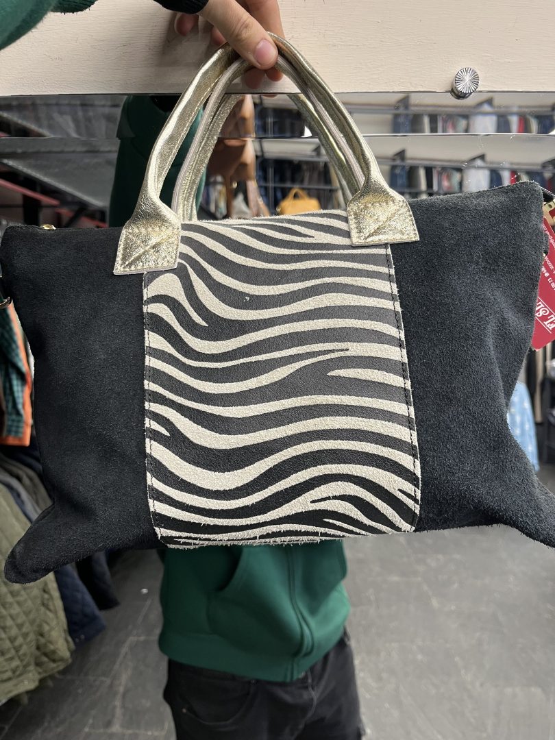 Este bolso de piel animal print destaca por su diseño original y elegante, ideal para quienes buscan un complemento diferente y con personalidad. La parte frontal incorpora un llamativo detalle animal print que aporta un toque moderno y actual al conjunto.