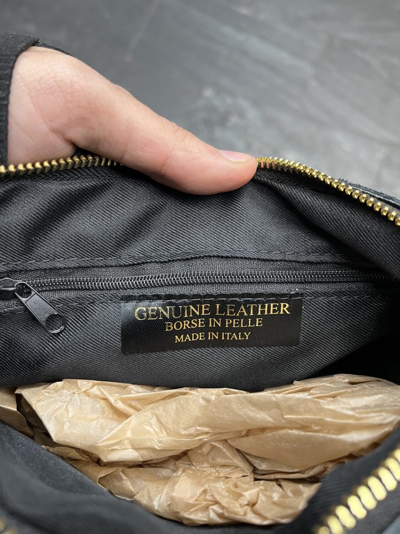 El interior del Bolso de Piel Negro Redondeado con Tachas está completamente forrado e incorpora bolsillo interior con cremallera para organizar pequeños objetos.