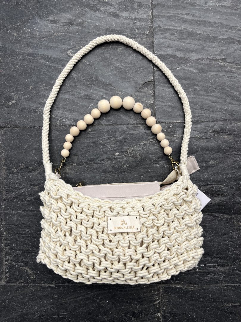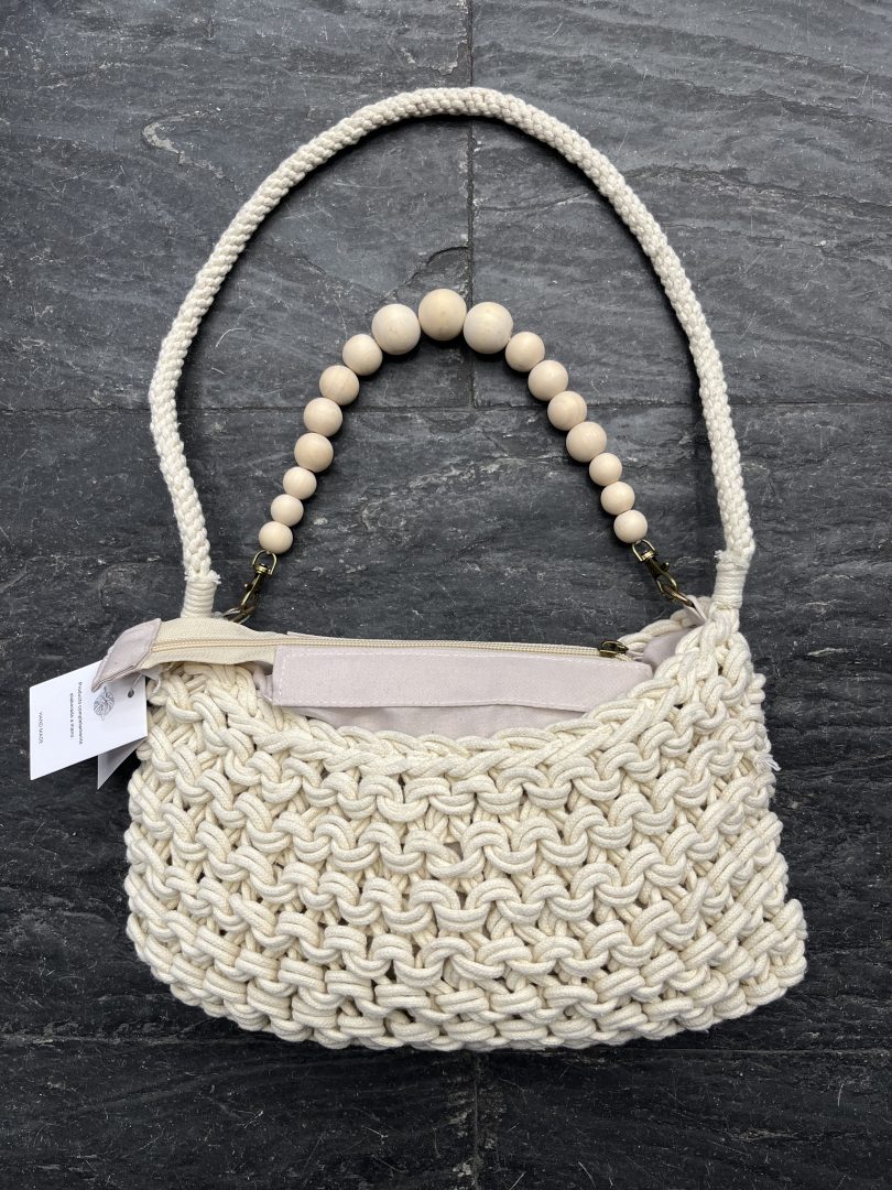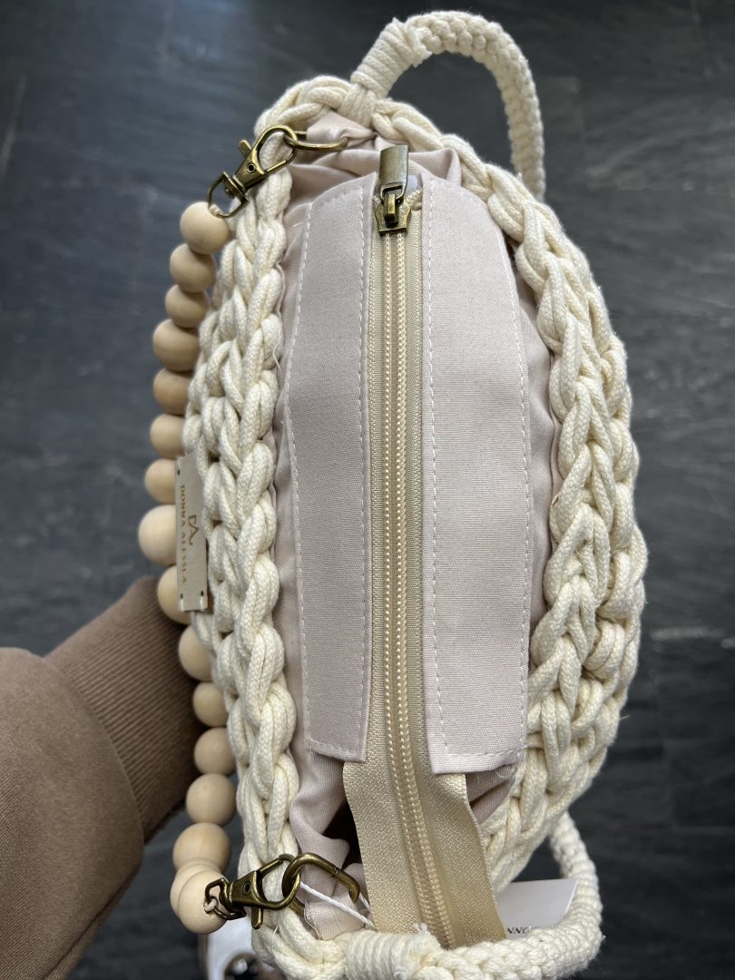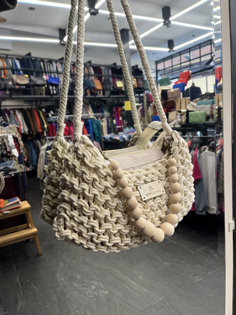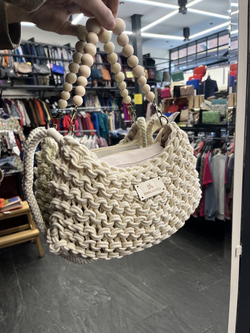 Bolso trenzado de algodón en tonos naturales, con un diseño artesanal que aporta un estilo boho y veraniego único.