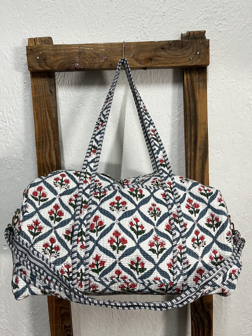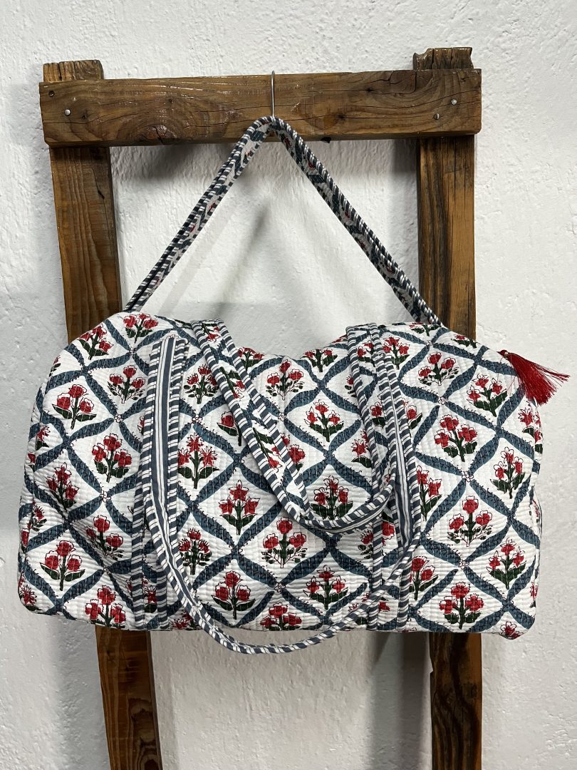 Bolsón Acolchado de Viaje 100% Algodón Estampado Flores Rojas
