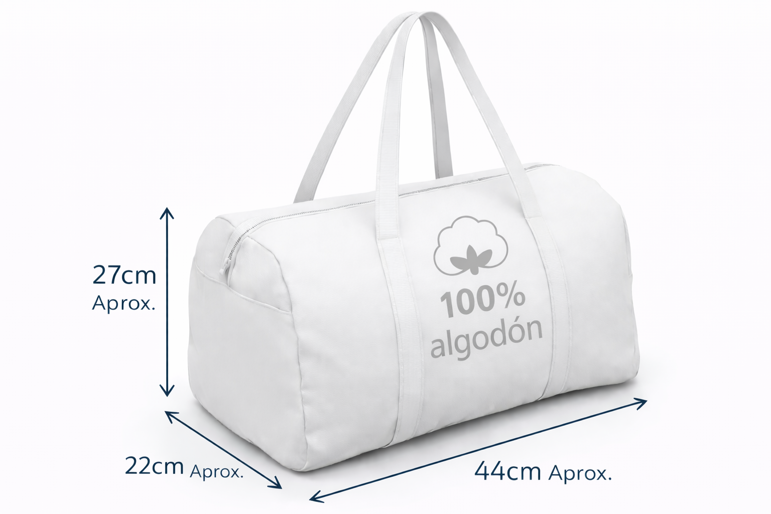 El bolsón de viaje acolchado 100% algodón es una opción práctica, ligera y cómoda para escapadas, gimnasio o uso diario. Su diseño amplio y funcional lo convierte en un complemento versátil y fácil de combinar.