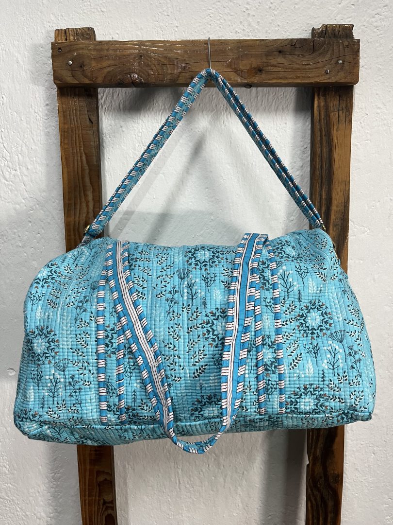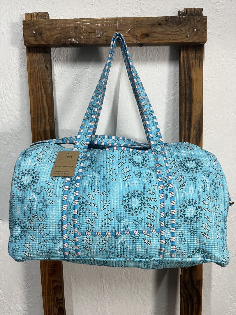Bolsón de Viaje Acolchado 100% Algodón Estampado Turquesa Étnico