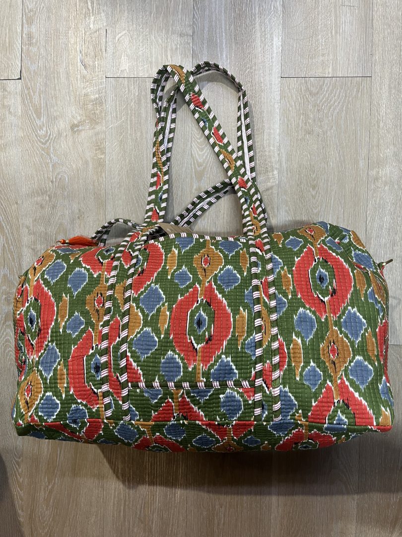 Bolsón de Viaje Acolchado 100% Algodón Estampado Geométrico Verde