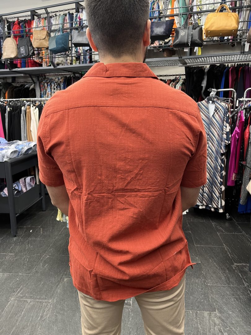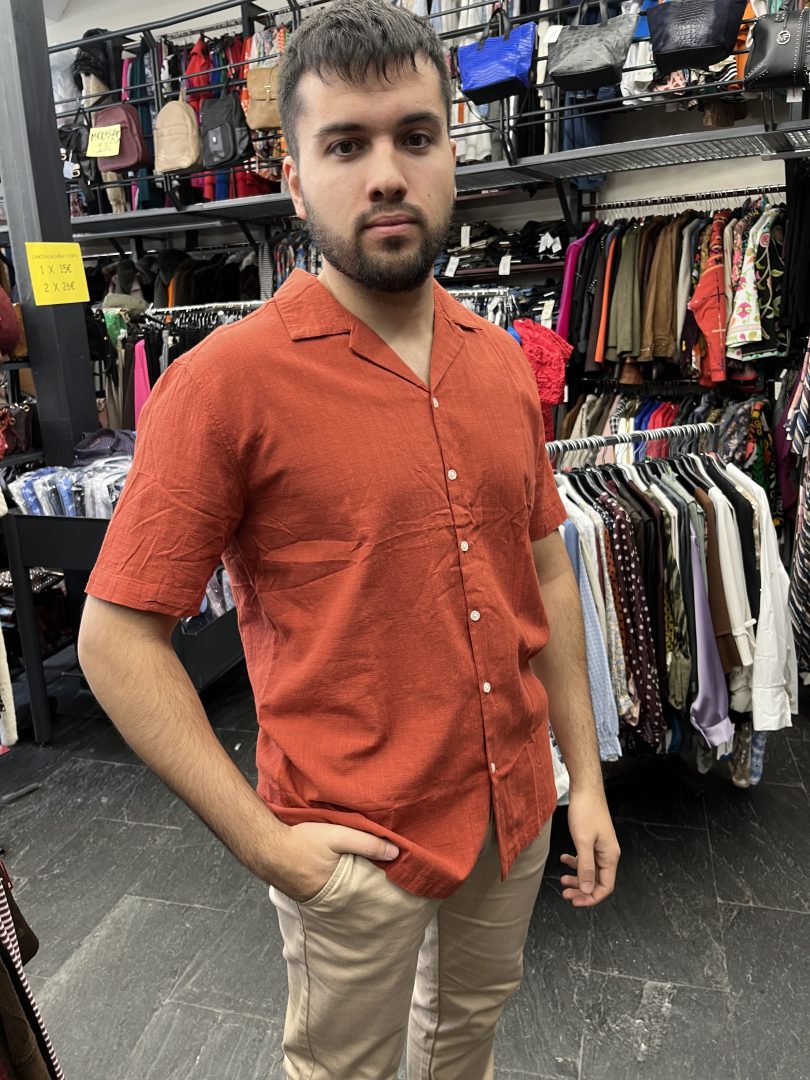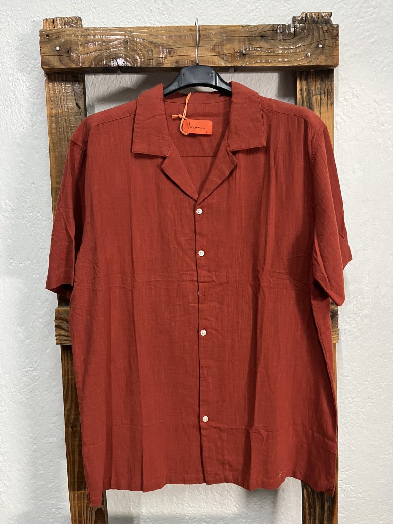 Esta camisa manga corta color caldera confeccionada en 100% algodón es una prenda fresca y cómoda, ideal para los meses de primavera y verano.