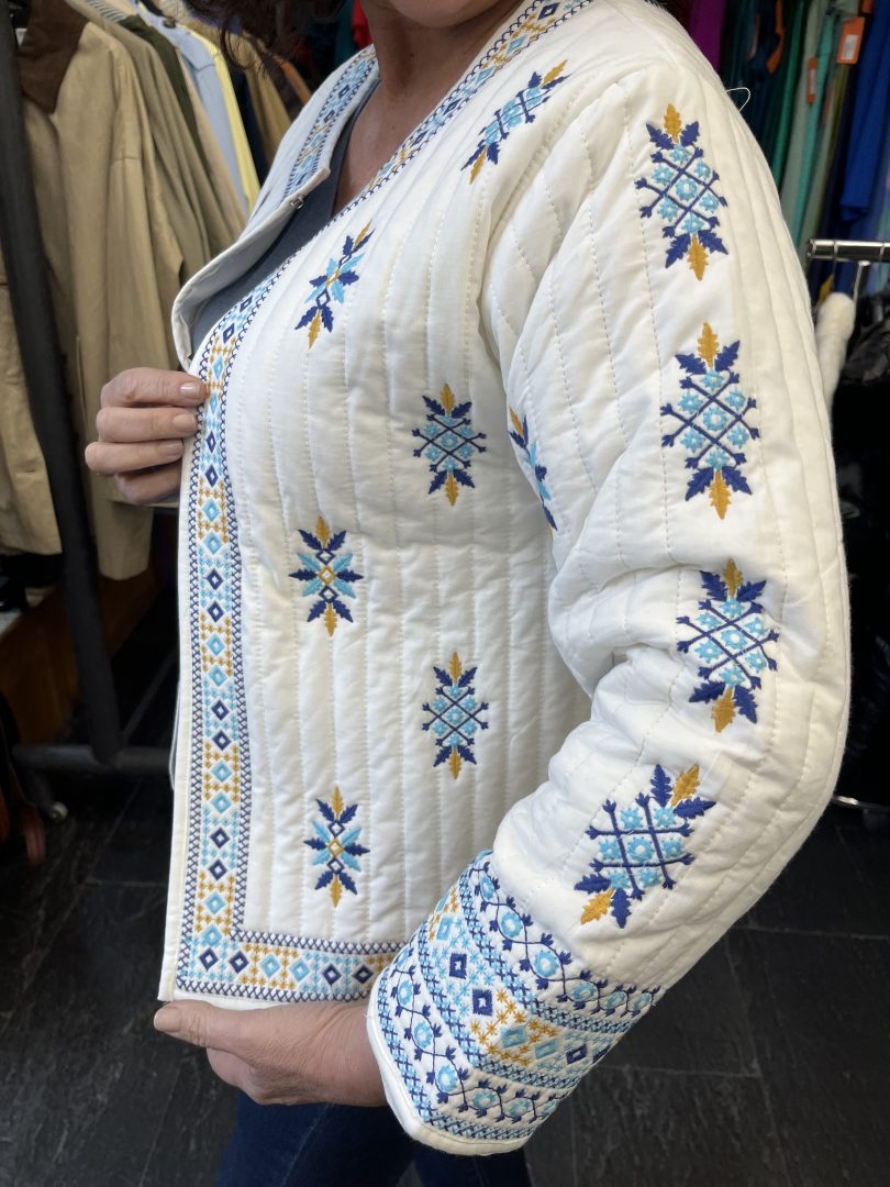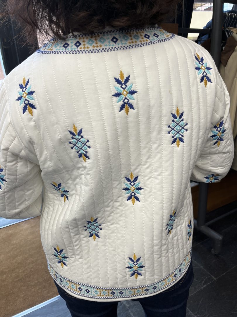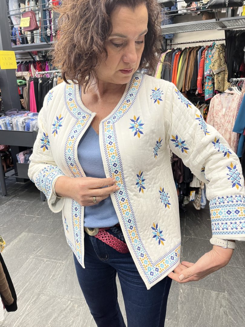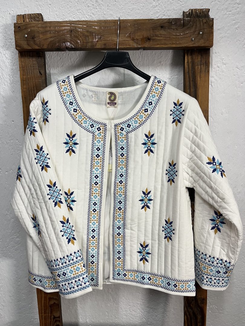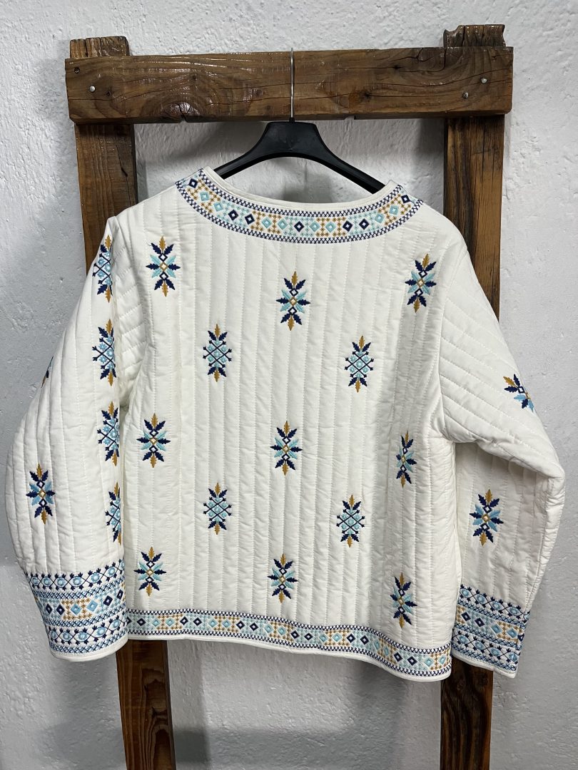 Chaqueta bordada confeccionada en 100% algodón, una prenda ligera y cómoda perfecta para entretiempo.