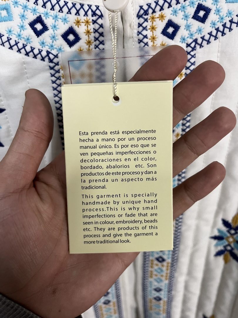Destaca por su diseño bordado en tonos azules y detalles decorativos en mangas y parte frontal, aportando un estilo artesanal y elegante. Gracias a su tejido natural de algodón, es una prenda transpirable, suave y fácil de combinar con looks casuales o más arreglados.