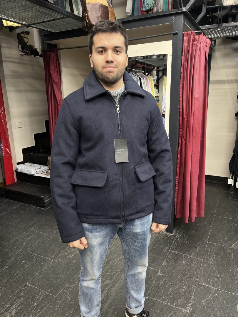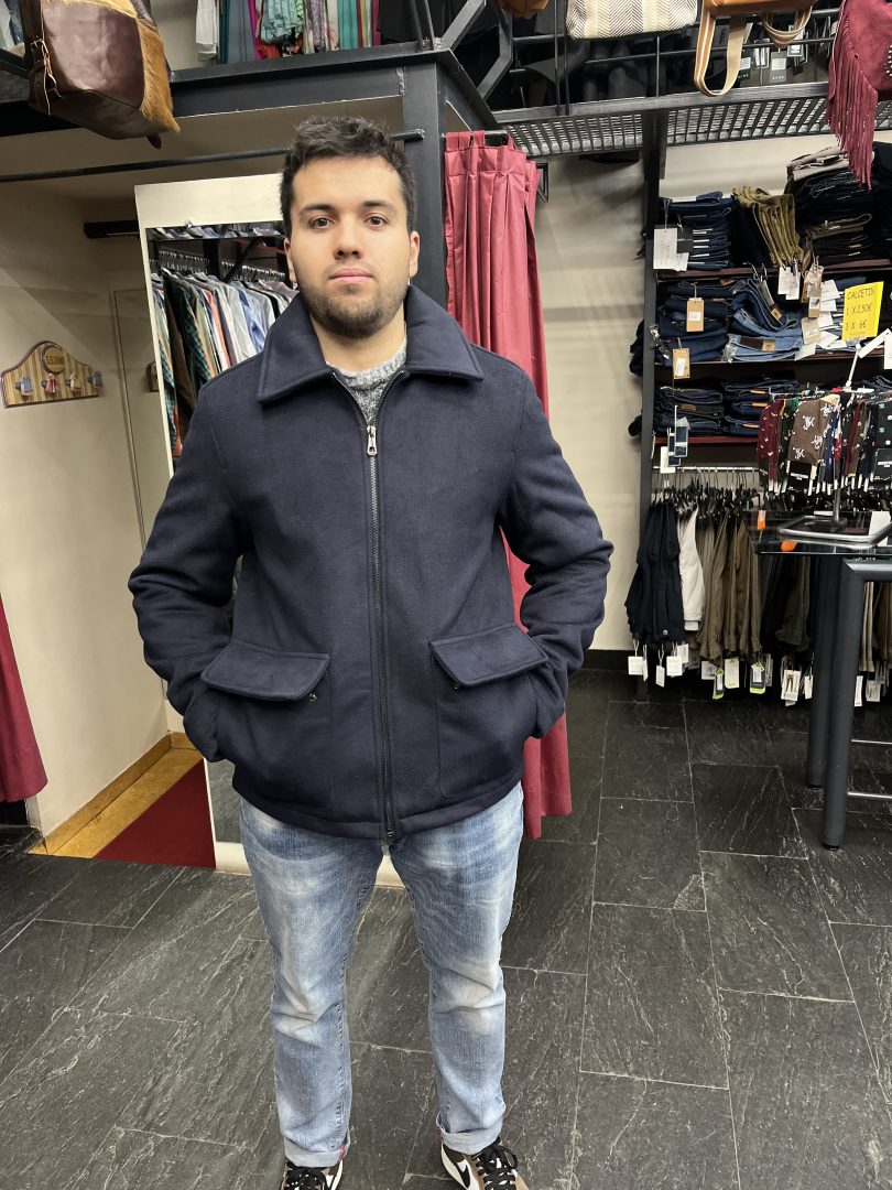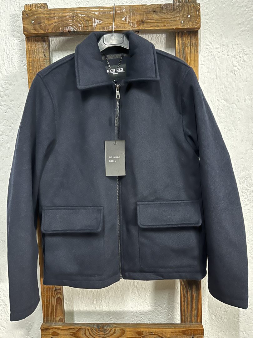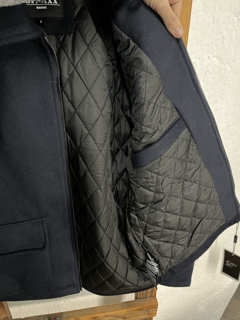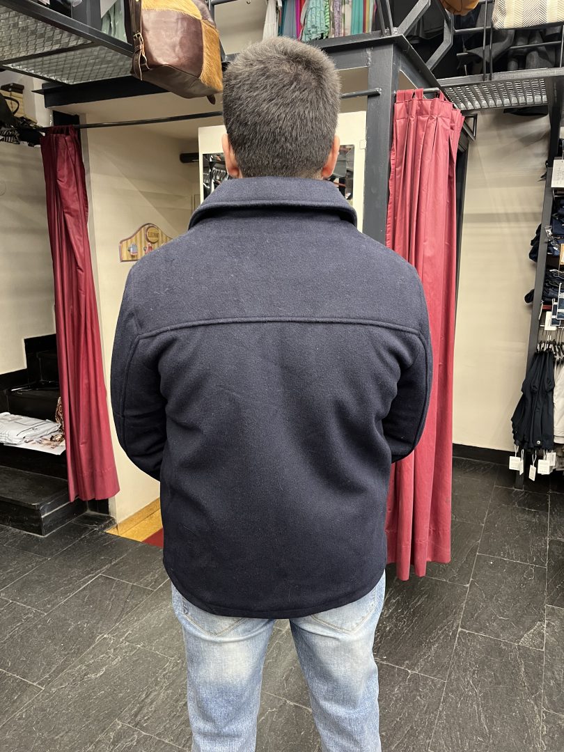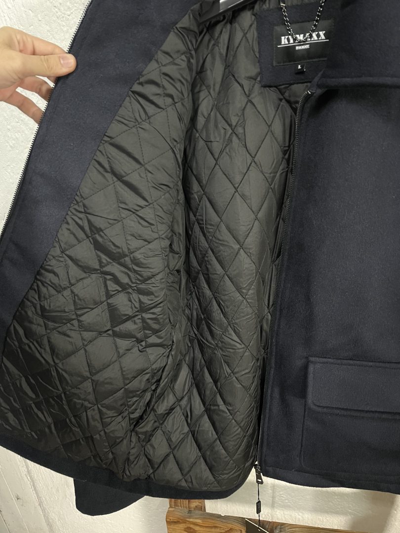Chaqueta de paño azul marino para hombre con interior acolchado, ideal para los meses más fríos.