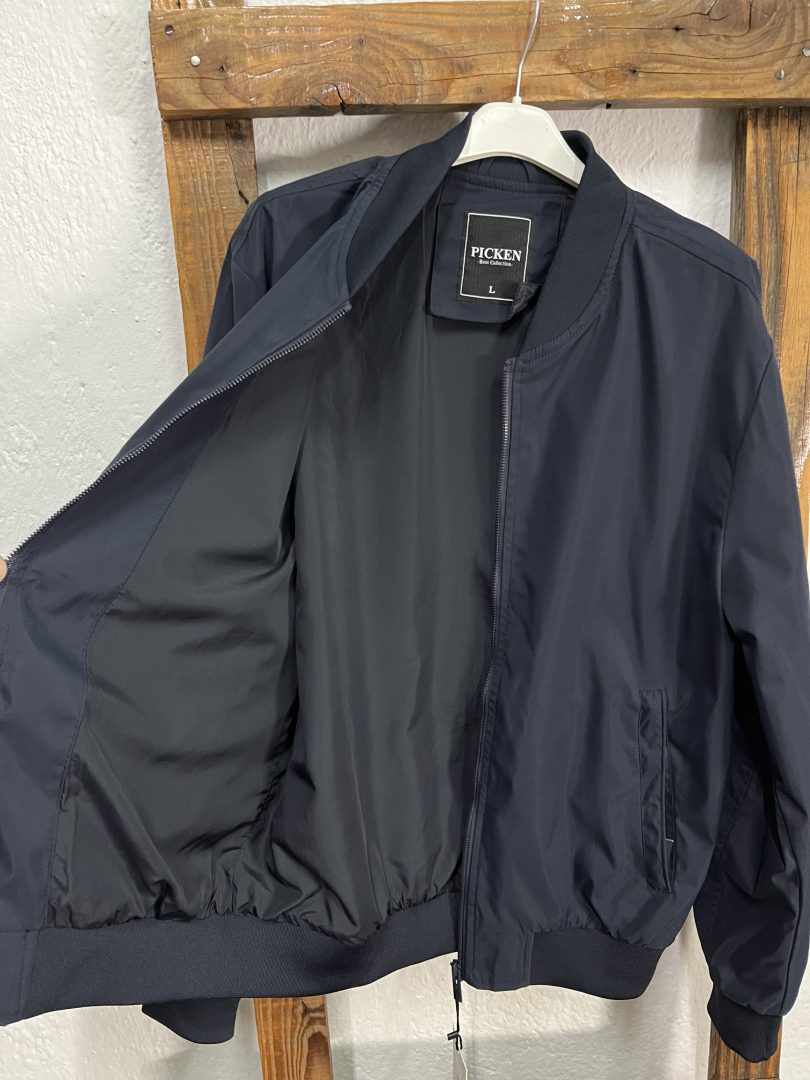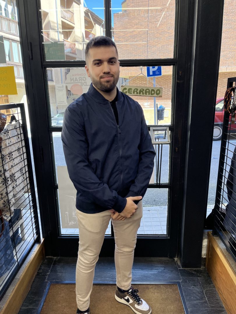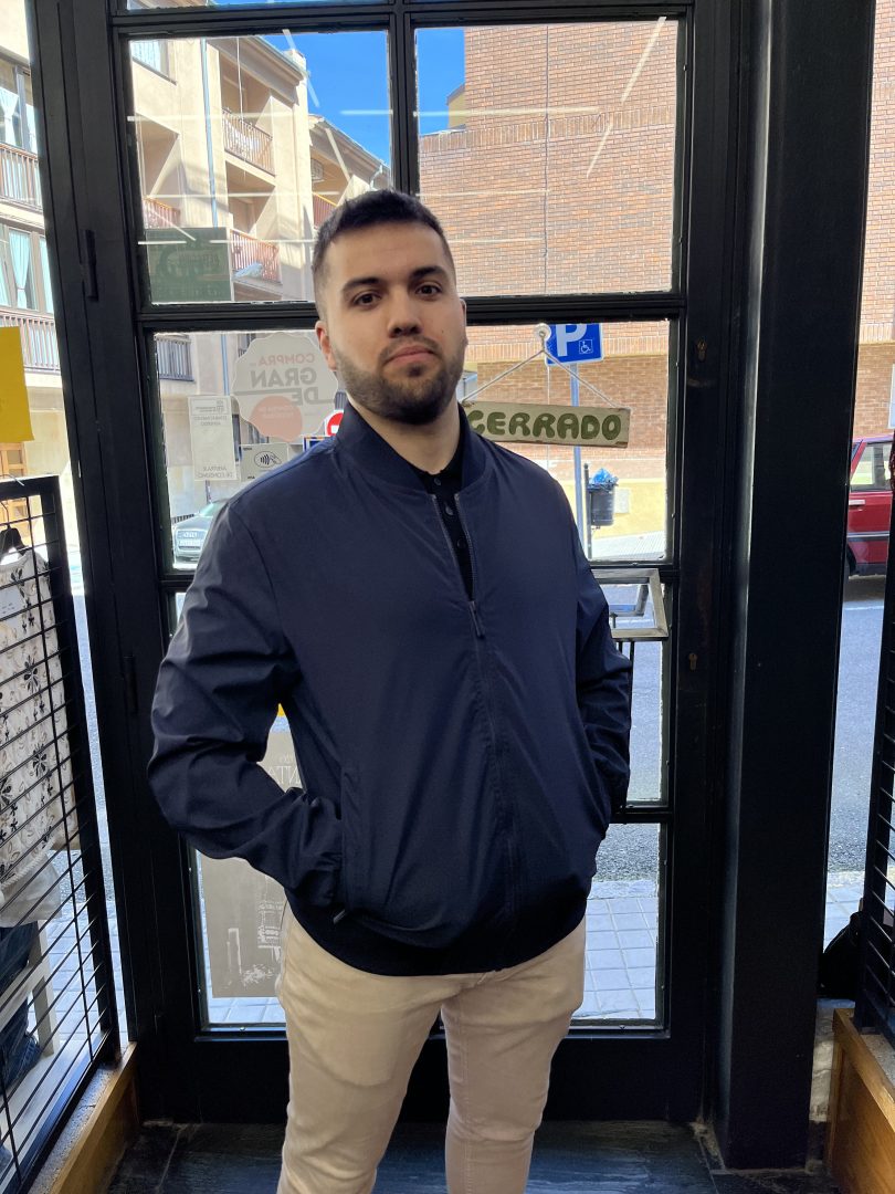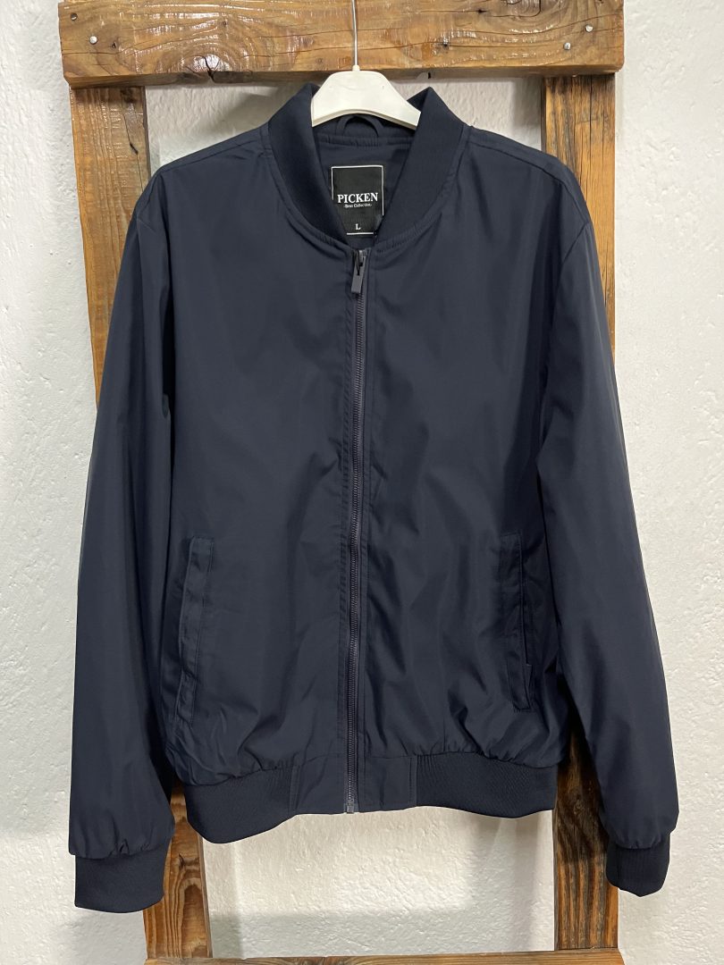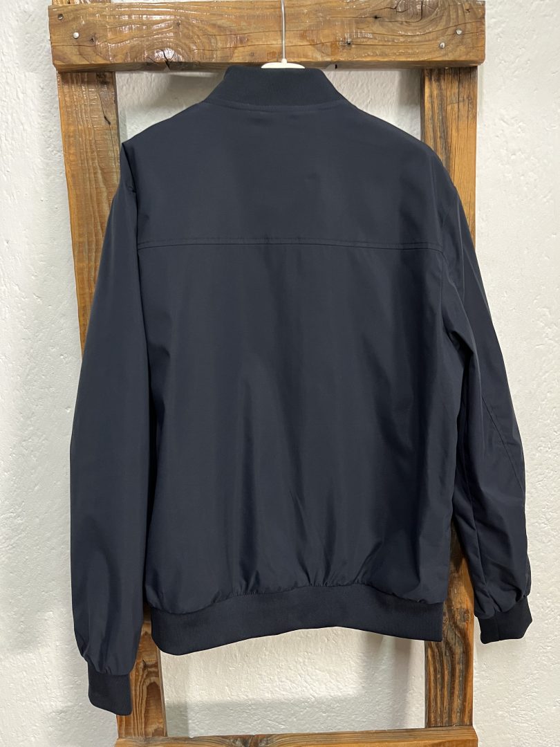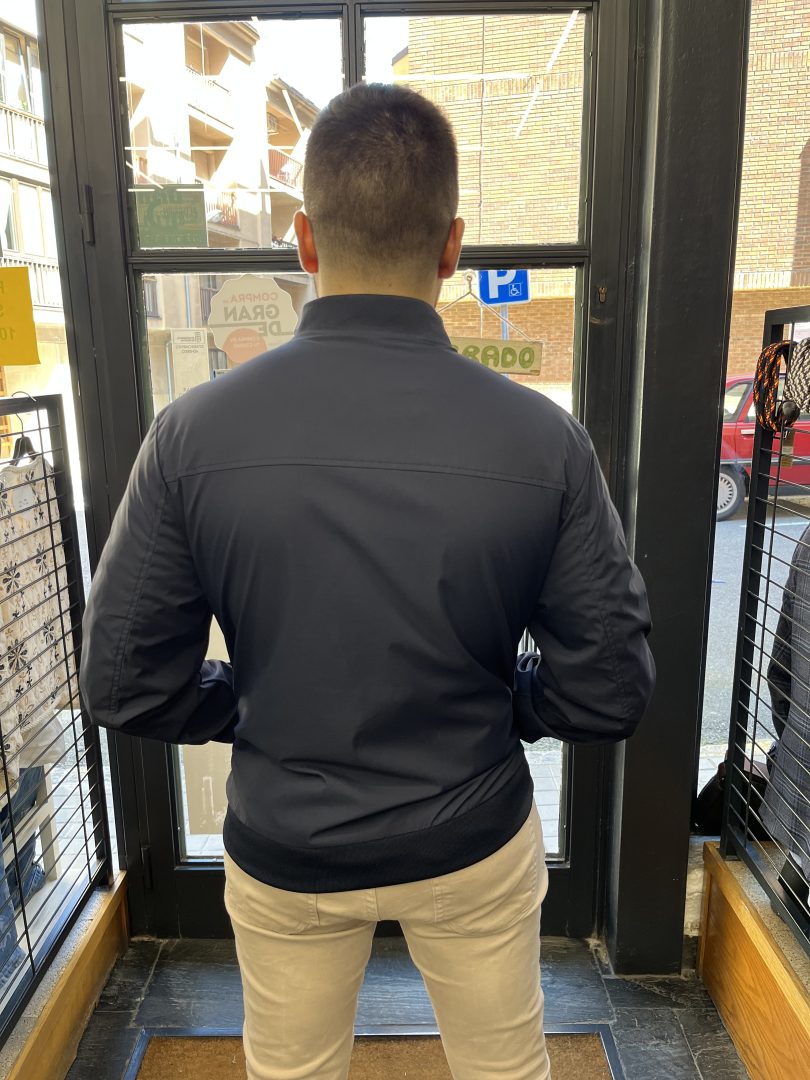 Chaqueta de entretiempo en color azul marino, perfecta para el día a día. Una prenda ligera, cómoda y muy práctica que no puede faltar en tu armario.